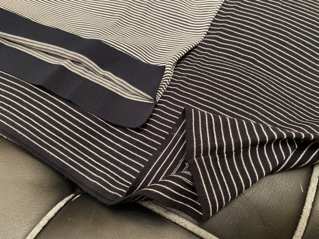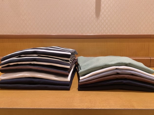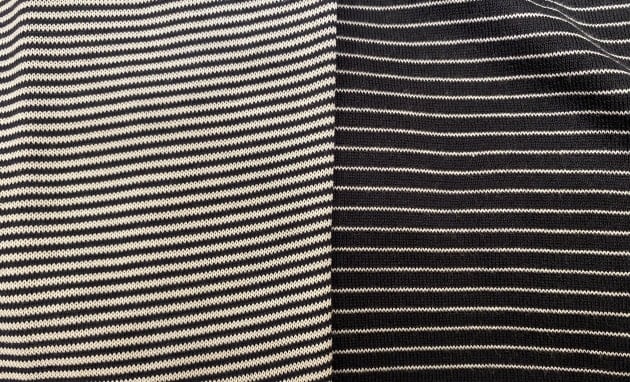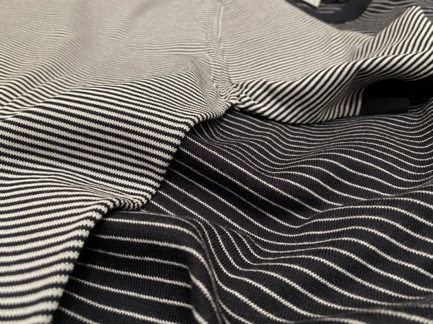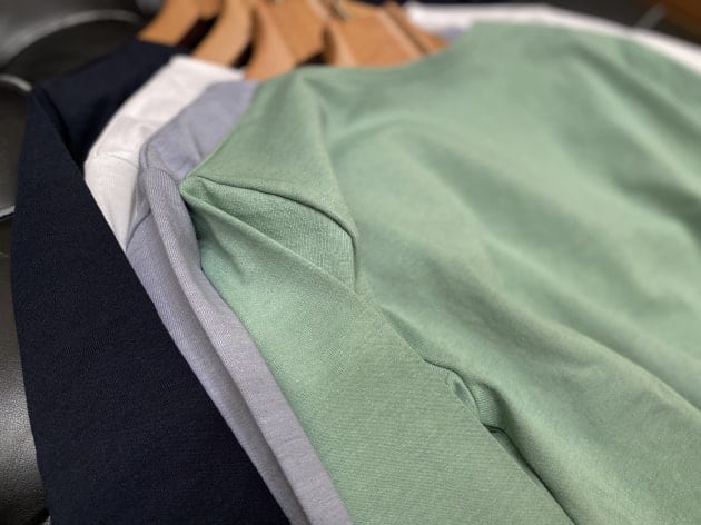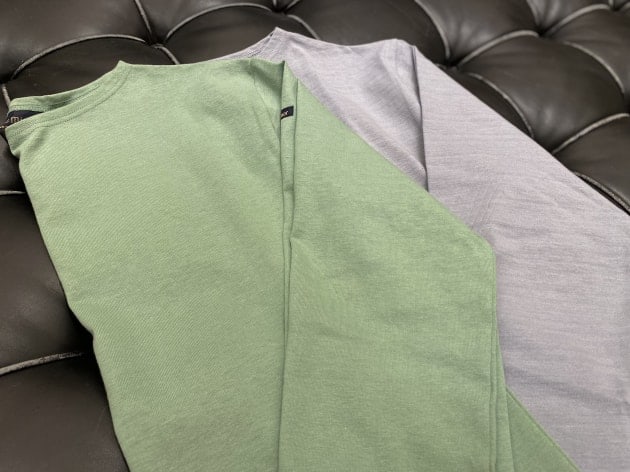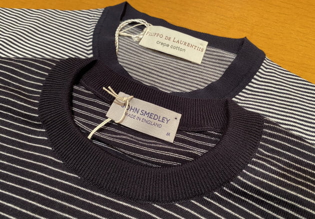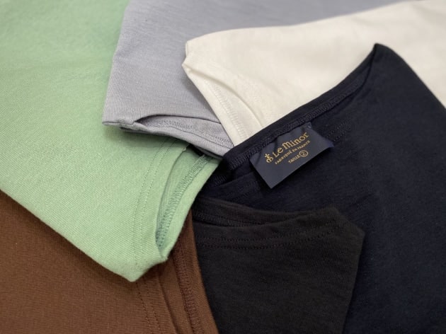 光沢のあるハイゲージのニット地は、上質なギザコットン60%にレーヨン40%の混紡素材。しっかりとしたコシは残しつつ、非常に滑らかでテロっとした質感がラグジュアリー。