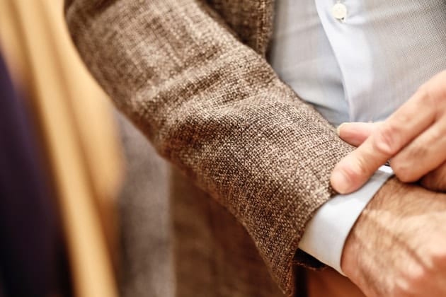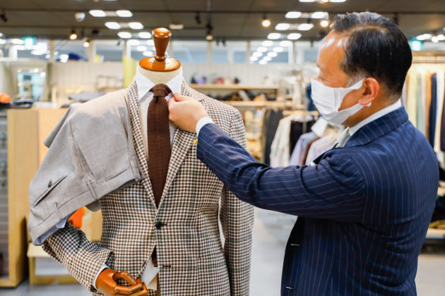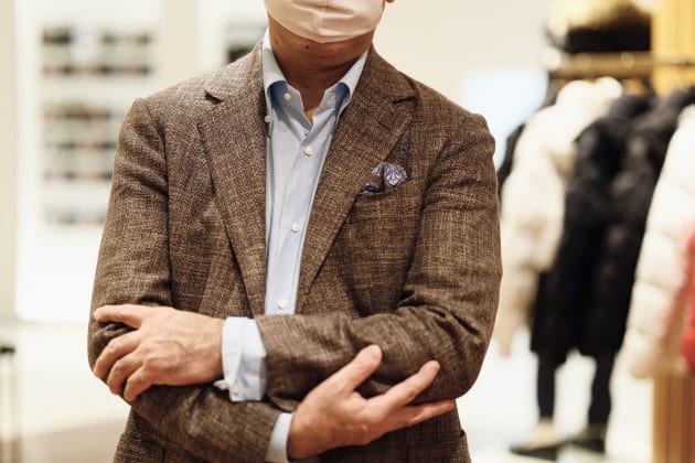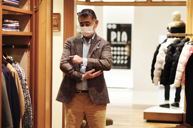 また、フロント部分の前立てのリュームを抑え、それに伴ってボタンのサイズも小さく修正。インナー使いが増える秋冬シーズンによりレイヤードしやすい顔つきに変更。もちろん一枚での存在感もしっかりとあります。