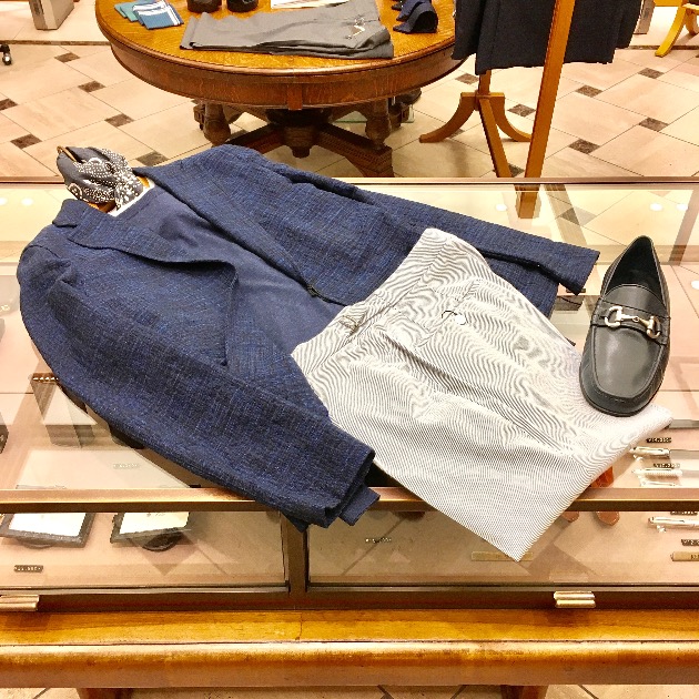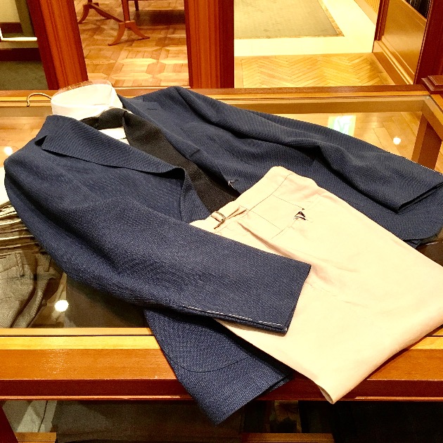 ピークドラペルのキャバルリーツイルスーツ。今年注目のアイテムです。