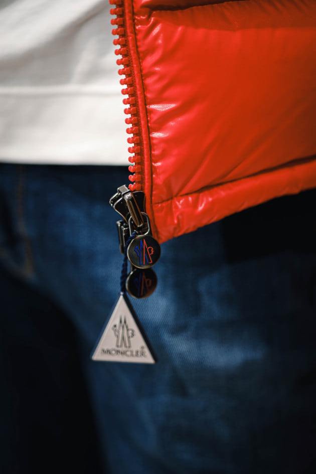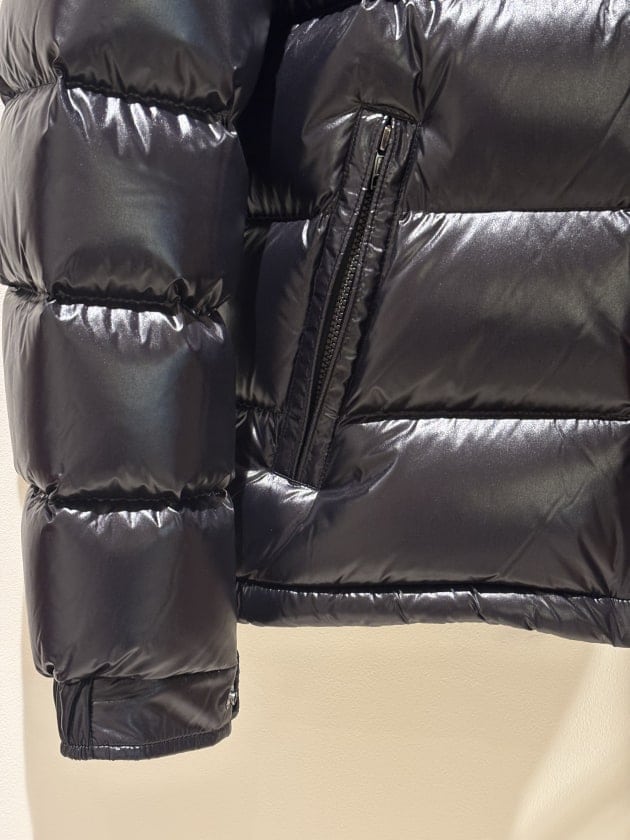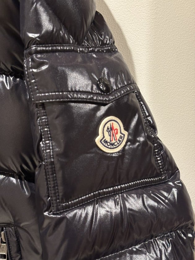 ナイロンラケ(シャイニー)素材で、左肩にCOQロゴ。これぞ<MONCLER(モンクレール)>というアイコニックなデザインのモデルです。