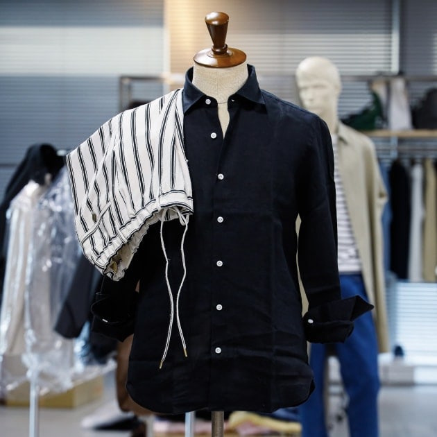 ジャージのような編み方をしており、リネン100%とは思えないぐらい伸縮性が高く、柔らかい着心地。入荷してきた時は本当にリネン100%??と疑ってかかっていたぐらいです。