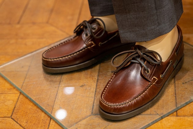 形的にも<CROCKETT &JOHNS>のものよりも軽快に感じるのでこのコーディネートにピッタリです。
