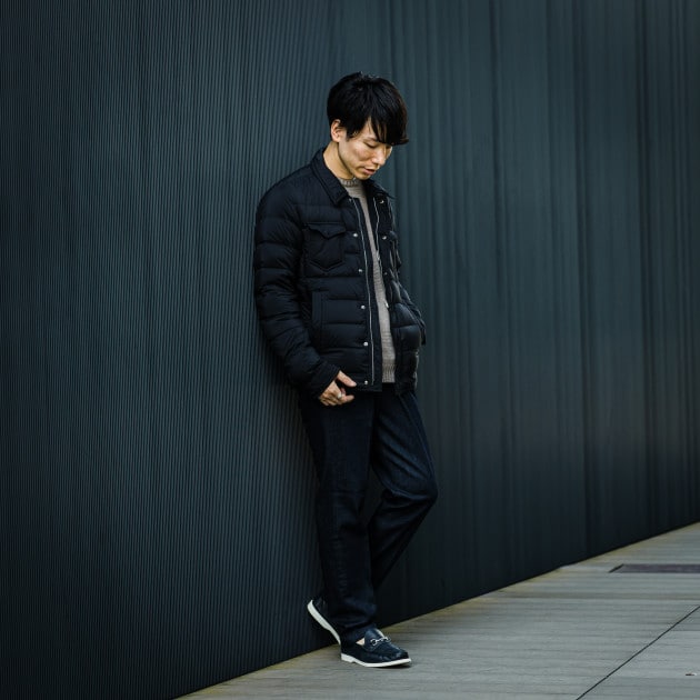 ジャケット、パンツに使われているブラックとブラウンよりも濃いトーンで、統一感あるものの少し奥行きを感じられるバランスがいいですね。このチョイスはセンスを感じられます。