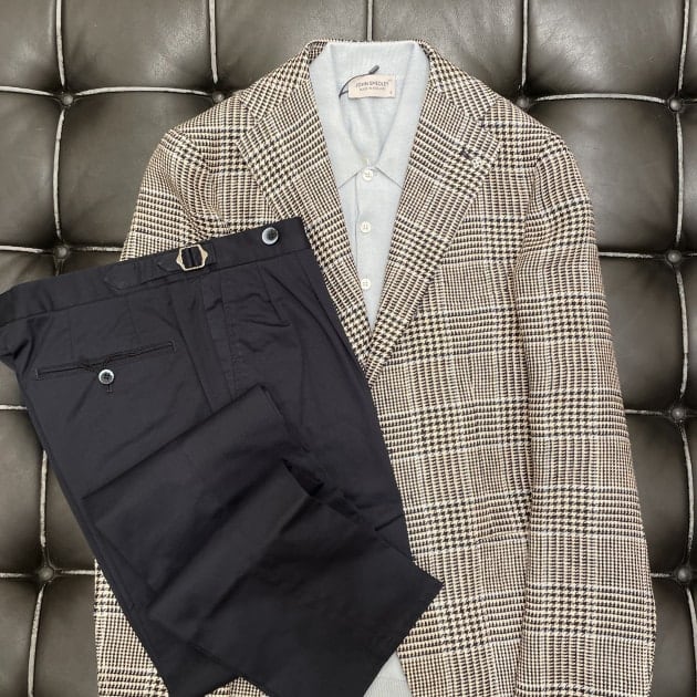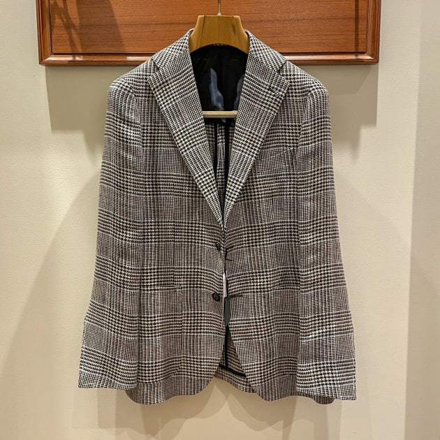 <ALFONSO SIRICA>のグレンプレイドまで。どちらもリネンの質感が非常に良く、シワを愉しんで着ることのできるジャケットです。