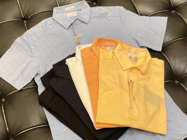 インナーに合わせているのはパイル生地のスキッパーポロ。