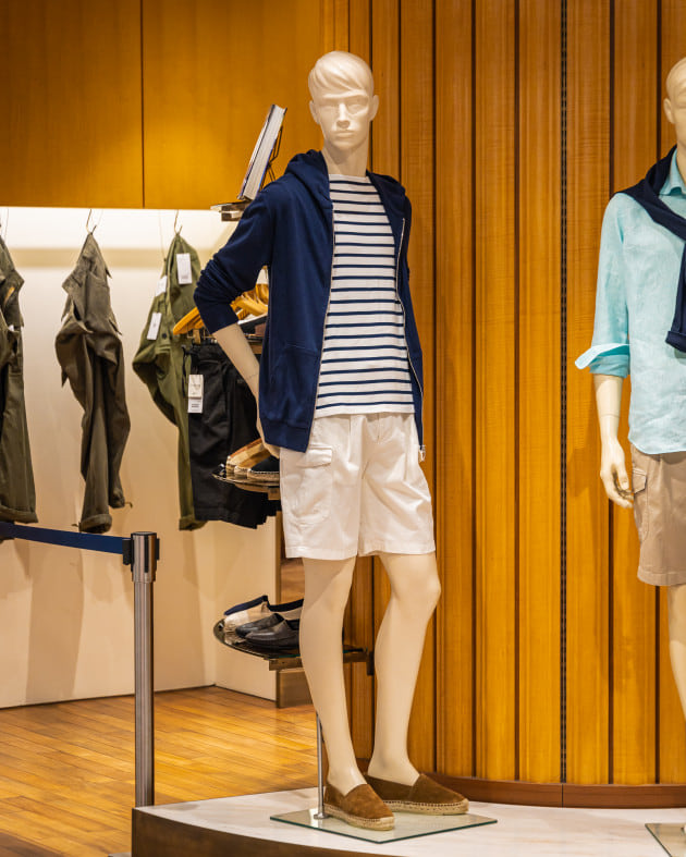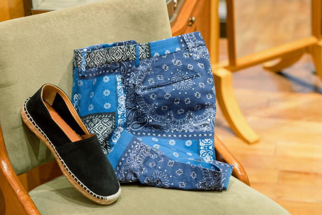 ショーツだけでなく、コットンパンツにもおすすめ。ドローコード付きのようなリラックスした雰囲気のアイテムと合わせるとまとまりのあるスタイルに。