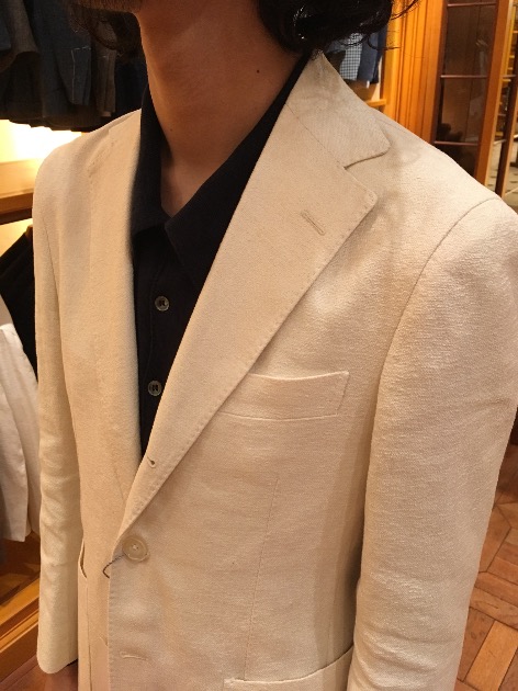 モヘア混の素材なので、光沢がありシャリっとした質感です。