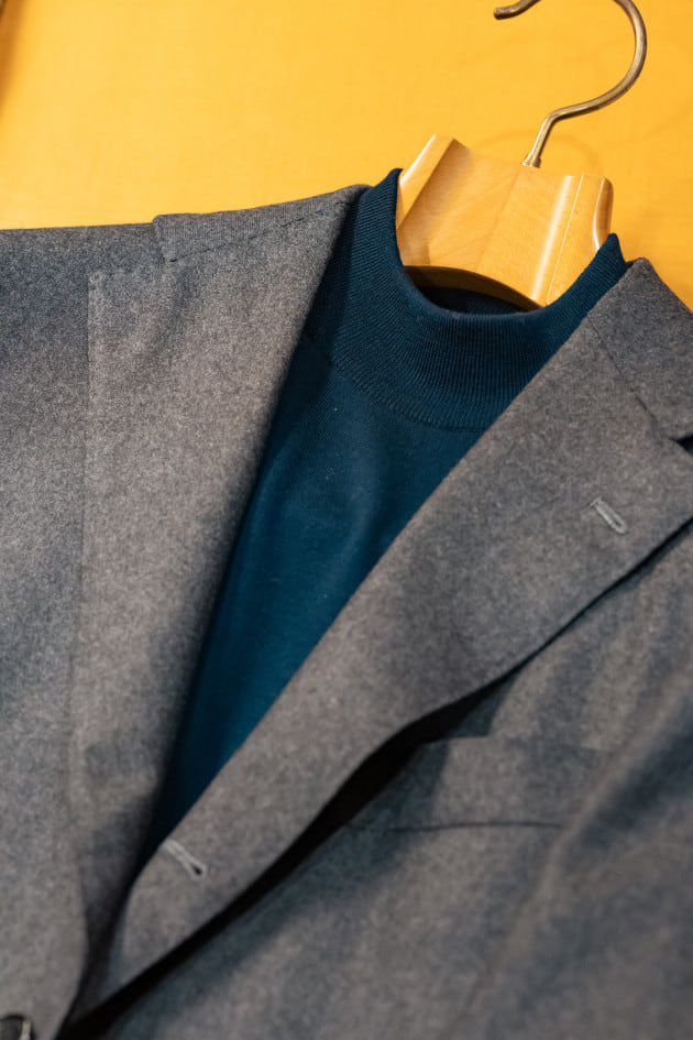 買ったものはすぐに着たい派の人間なので早速着用してきました。この気候だとニットも気兼ねなく着用できますからね。11月に入ったのでフランネルスーツを今季初下ろしして、シーズン早めに購入した<Vincenzo Miozza>も合わせて下ろしました。