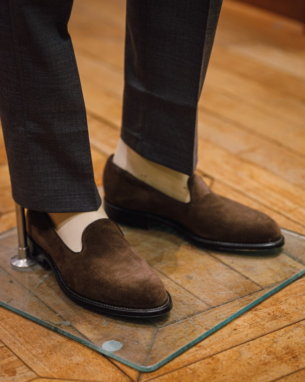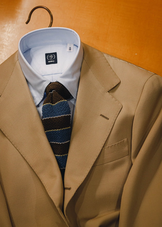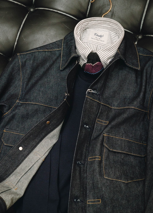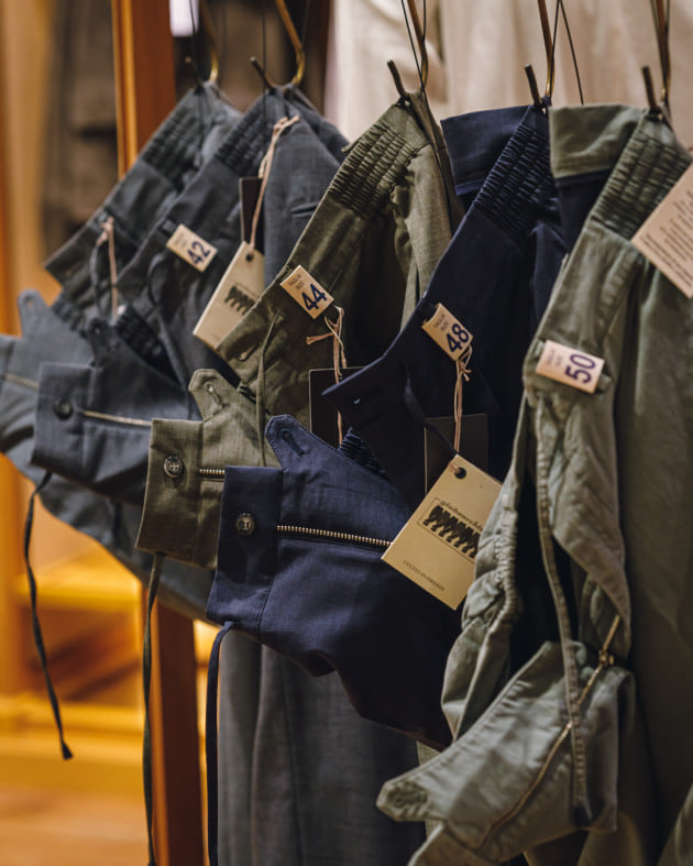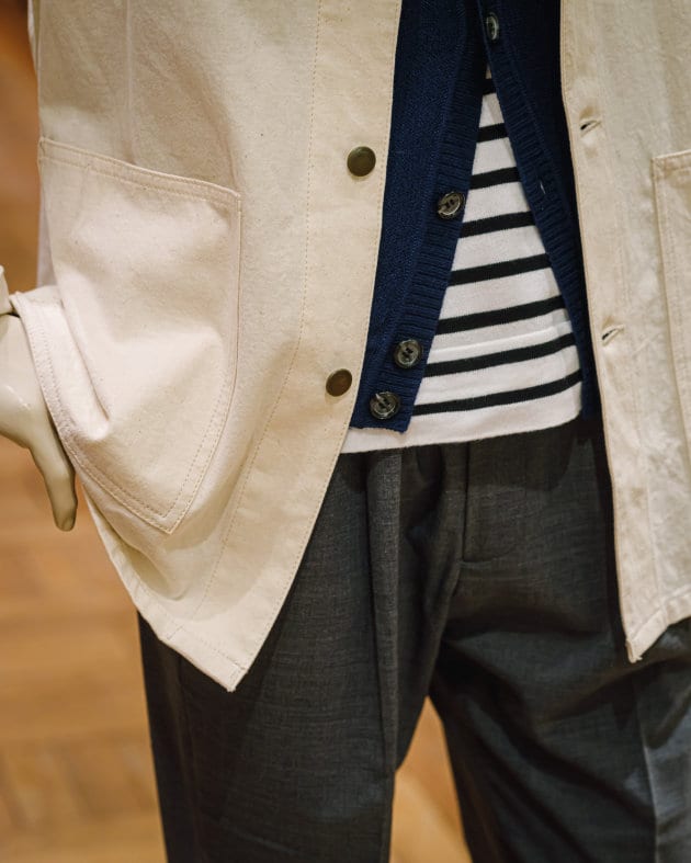 これまで展開してきたデニム生地のモデルとは、かなり違った雰囲気。とても新鮮な見え方ですし、カッコいいです。