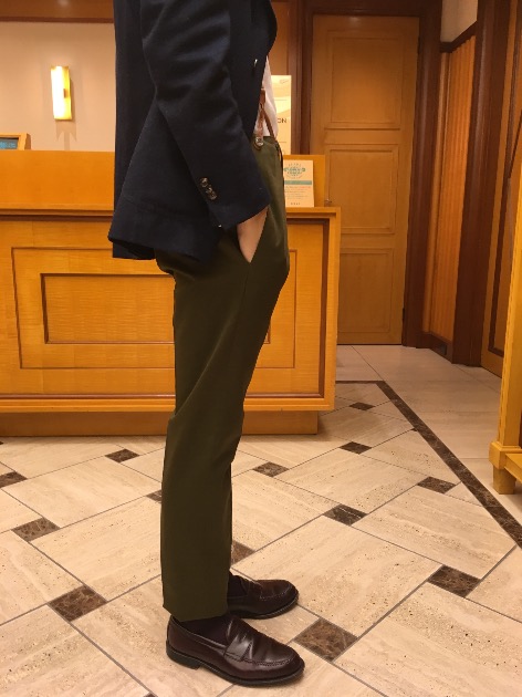 ノープリーツですが、太ももに余裕を持たせた細すぎないシルエットです!