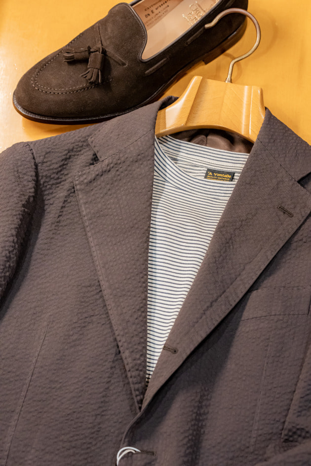 <Eminento H • Osaku>はウールギャバジンのスラックス。