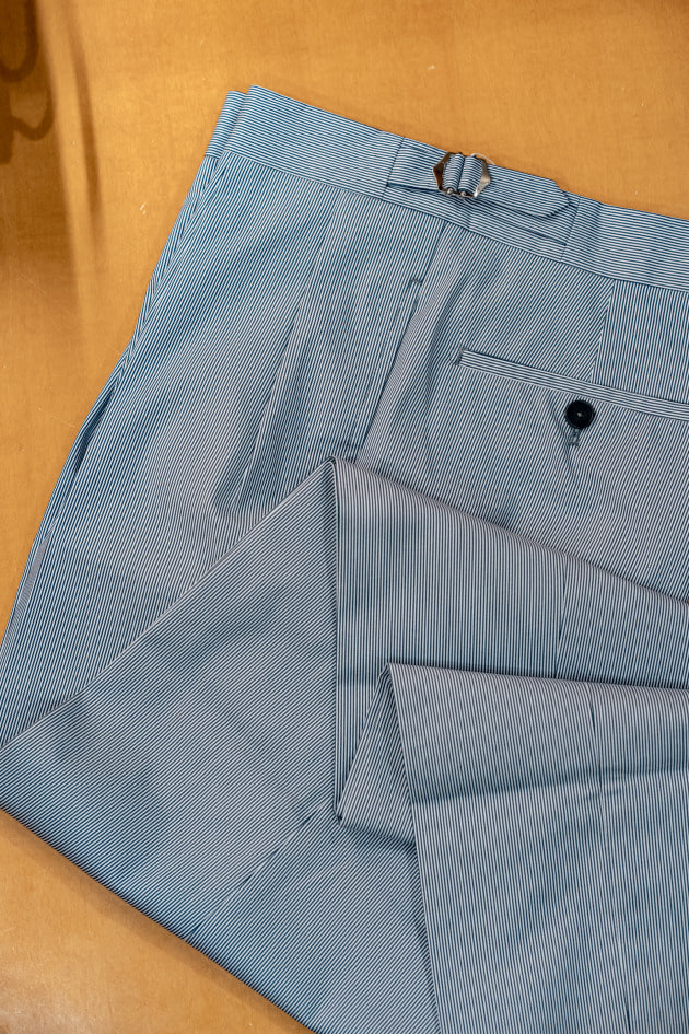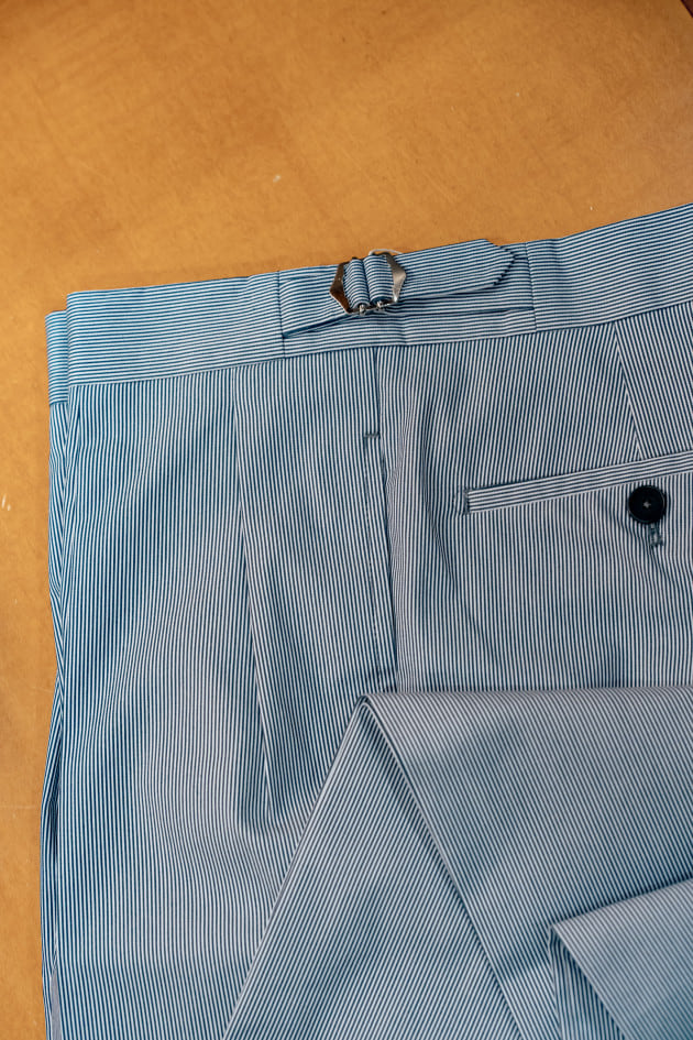 <BERNARD ZINS>は6本または8本だったのでこれがパッと見てわかる違いですね。1本がちょうど背中の中心にあり、ベルトが落ちないように支えてくれます。その分ウエストをいじる際には一度取り外しが必要なのでその分工賃がかかりますが、誤差程度なので問題はないでしょう。