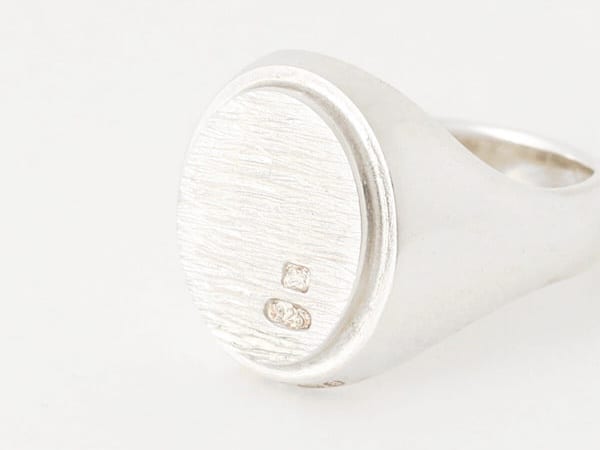 シグネットモチーフと、エンドが交差した変形型のリング。