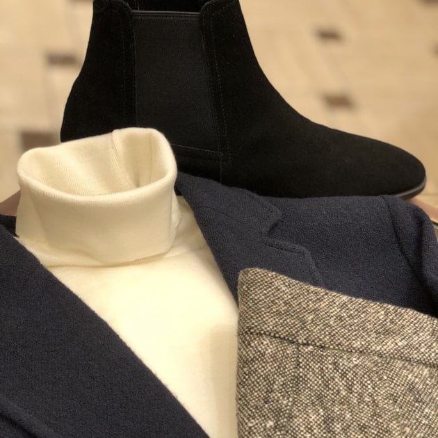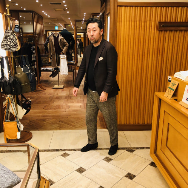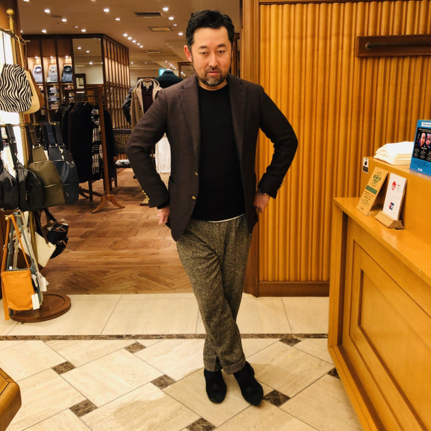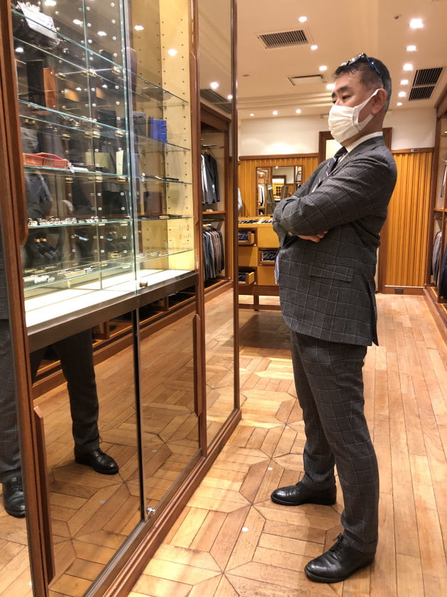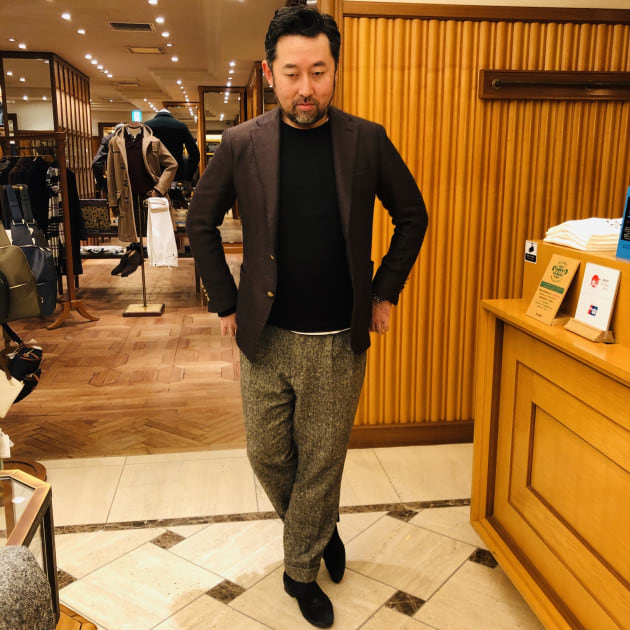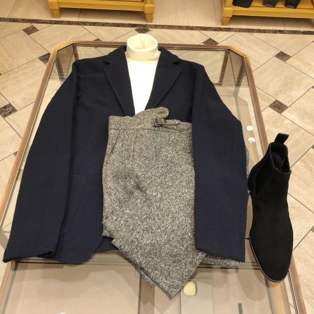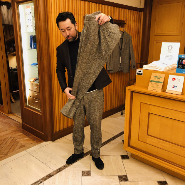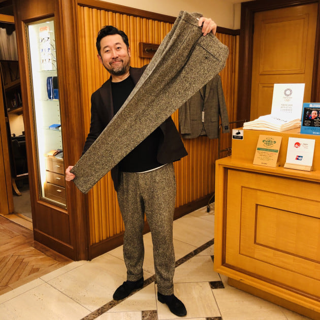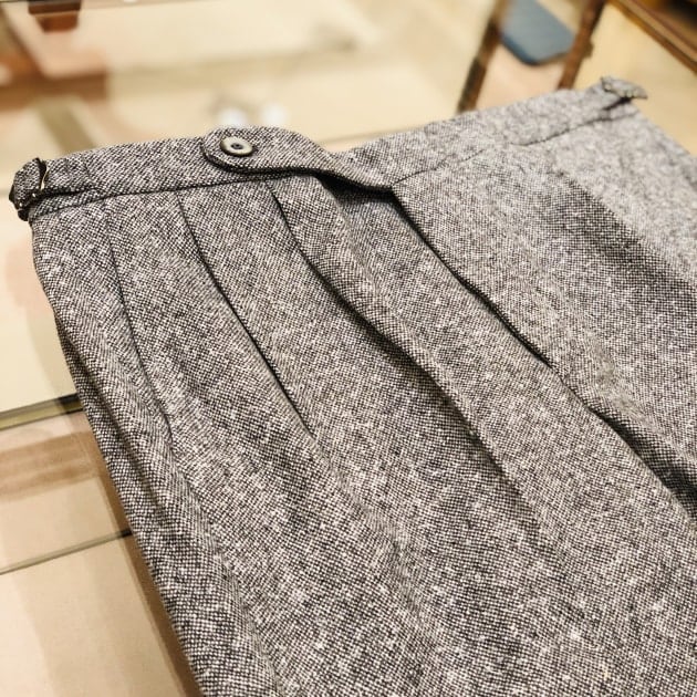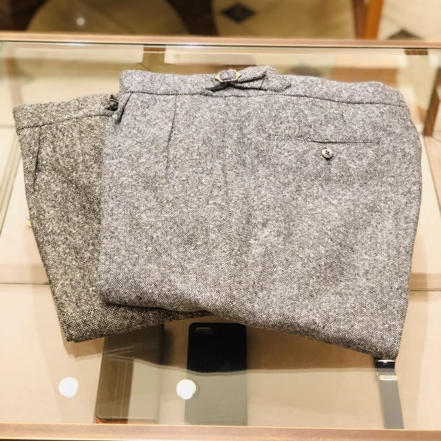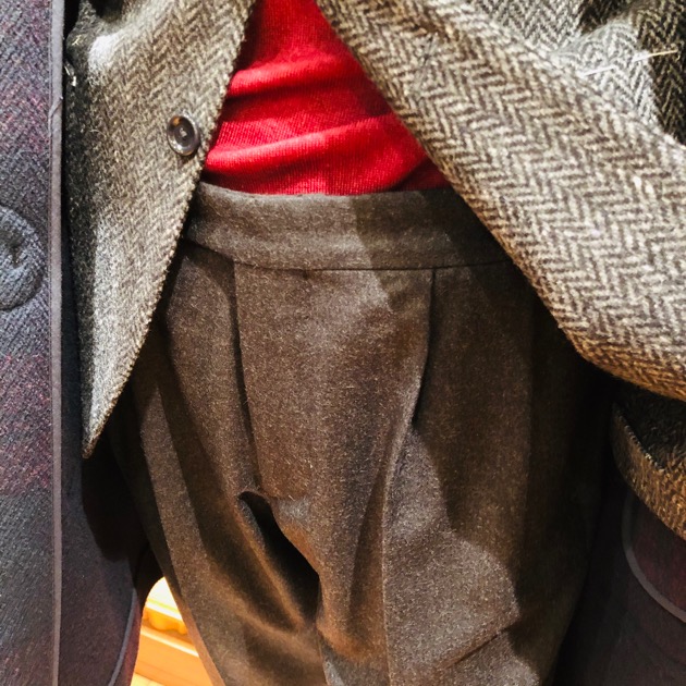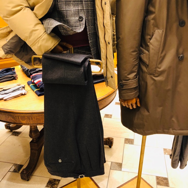 ここ数年スラックスは<BERNARD ZINS>ばかり購入していましたが、こちらは生地に心を奪われました。予約多数でキャンセル待ちになるぐらい人気で、キャンセルが出て私の手元に回ってきたのは3週間前。そして9月キャンペーン被りでお直しが混んでおり、先日ようやく仕上がってきました。