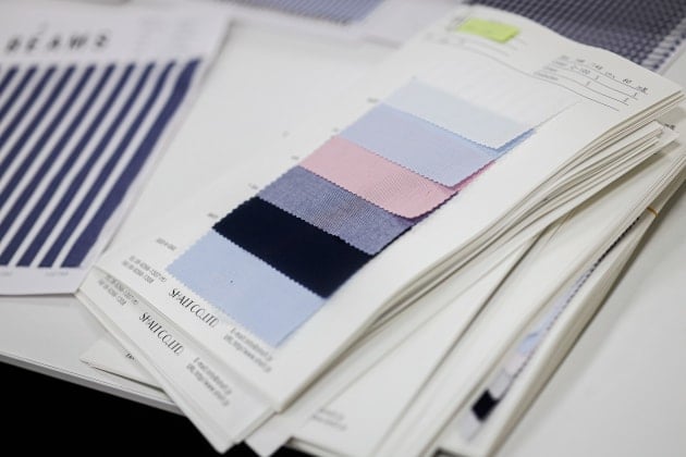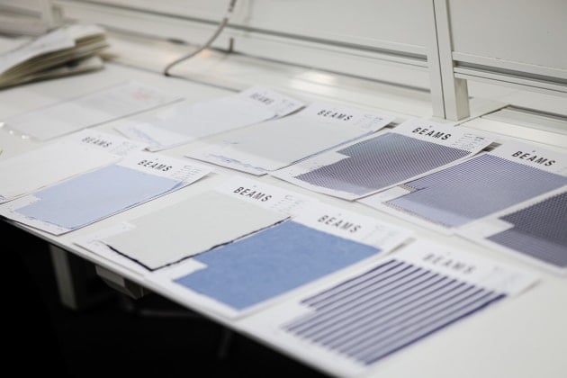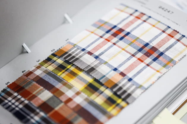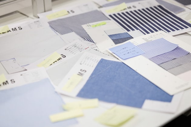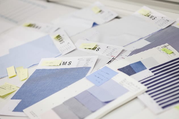 膨大な数の量の生地サンプルから、製品にしてカッコ良いもの、お客様の目に留めていただけるようなものを選んでいきます。