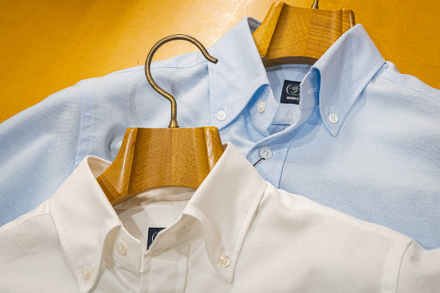 カジュアルなルックスのシャンブレー。白の糸がまばらに出てくるような清涼感ある質感は、シャンブレーの織りならでは。着込むほどに出てくる味も魅力です。