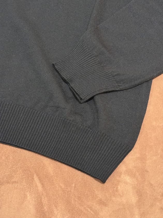 生地は14ゲージです。Triplofiloというメリノウール3プライニットです。毛玉が出来にくく、デリケートコースでの洗濯機洗いが可能というニット生地になっております。自宅でお洗濯出来るのは嬉しいポイントですよね。