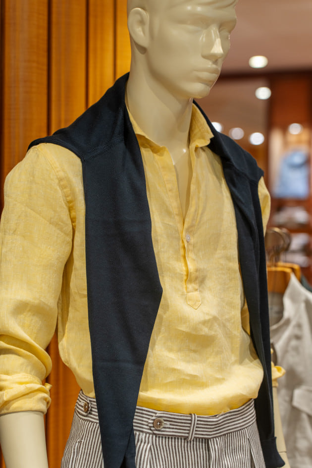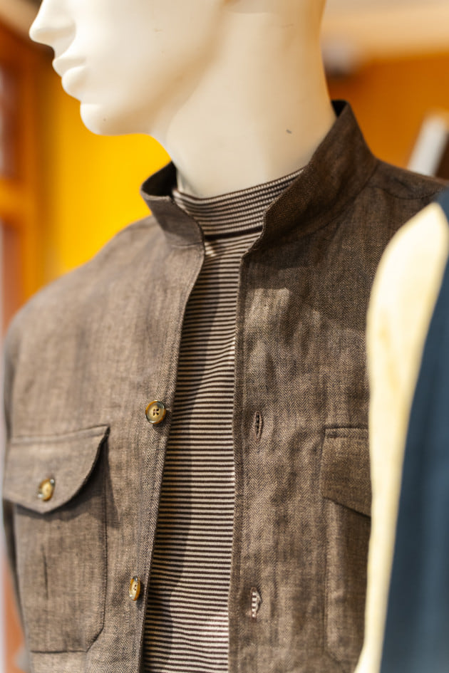 毎年爆発的な人気の<Brilla per il gusto>オリジナルのリネンシャツ。こちらのグリーンは今年の新色ですね。