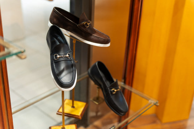 シューズはキルトモカシン。