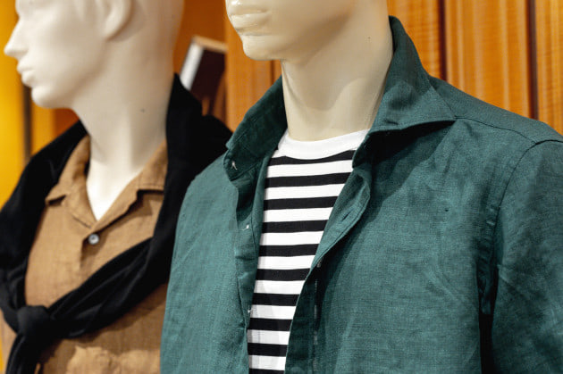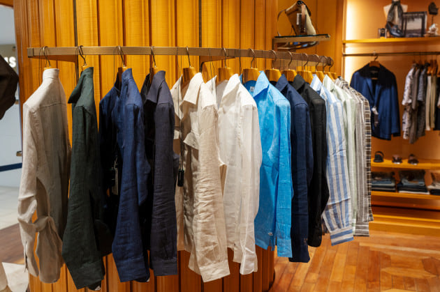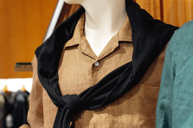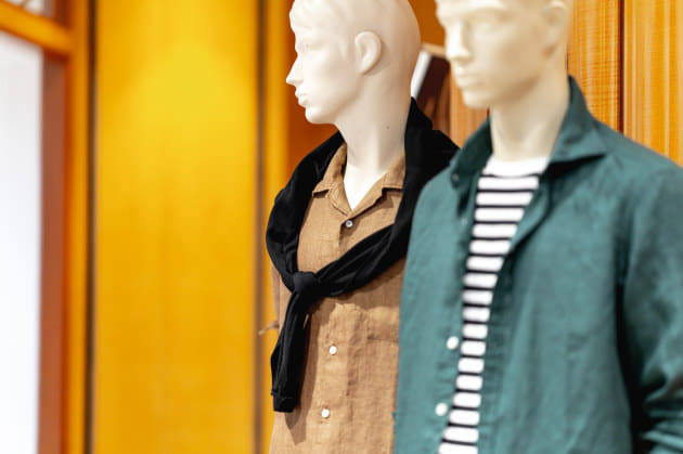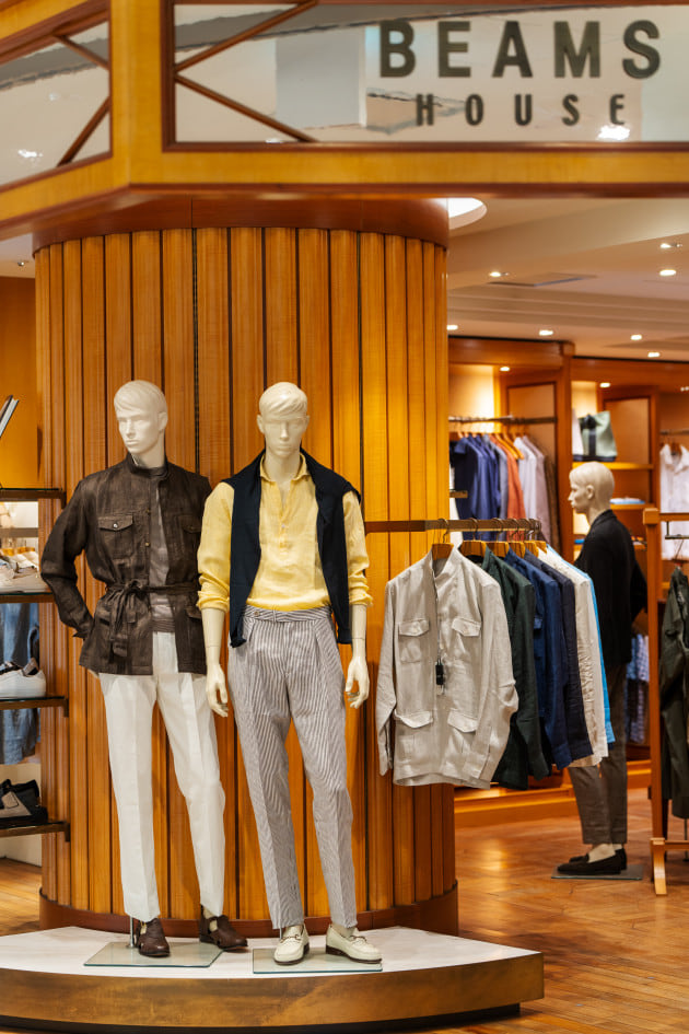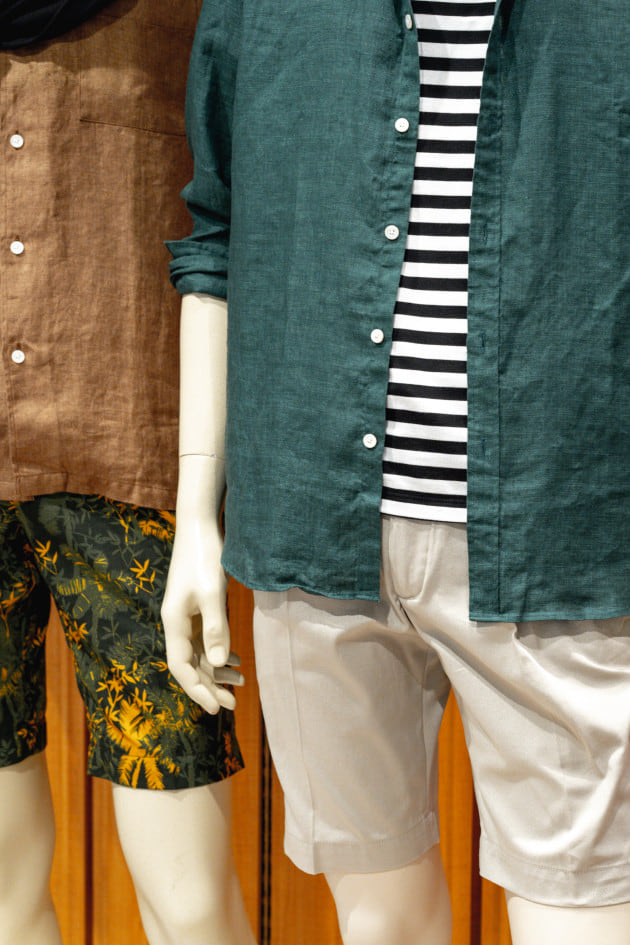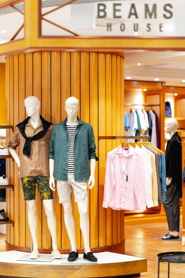 こちらのエントランスのコーナーには、人気のリネンシャツ、ショーツといったこれからの汗ばむ季節に活躍するアイテムがまとめられています。