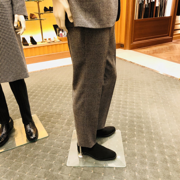 パンツは美しいテーパードシルエット。<DALCUORE>はジャケットはもちろん、パンツも非常にクオリティが高いんです。多くのサルトがパンツを委託している中、<DALCUORE>は自身の工場で作り上げています。蓄積された技術と経験から生み出されるパンツは、まさに一級品。