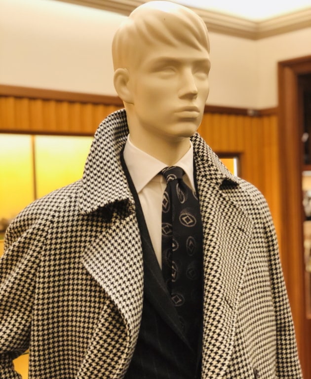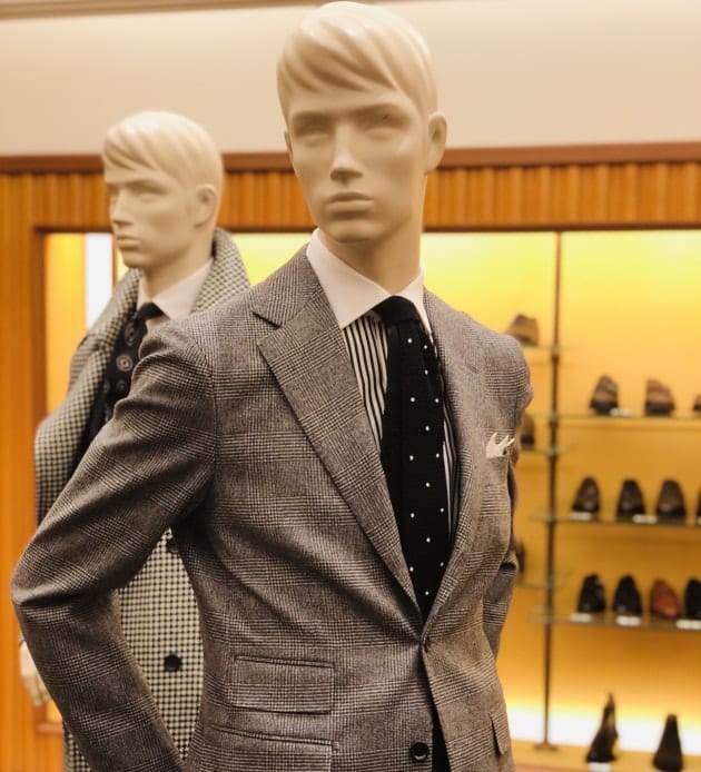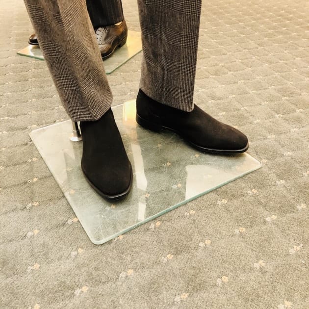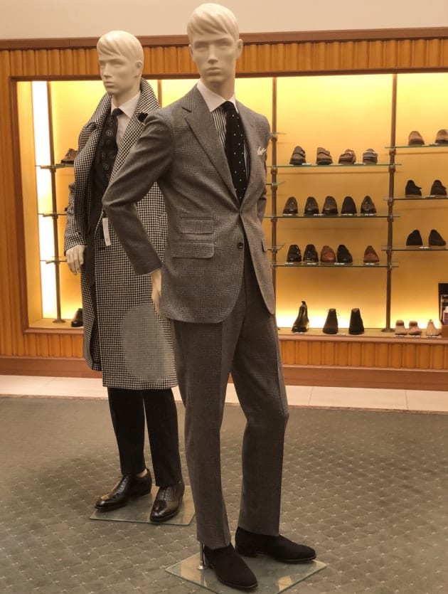 シューズは<Enzo Bonafe>の「CARY GRANT2」。ここでクラシックなスーツスタイルにほどよいアクセントを。今でさえスーツにサイドゴアはややスポーティな印象ですが、昔はよくあったそうです。