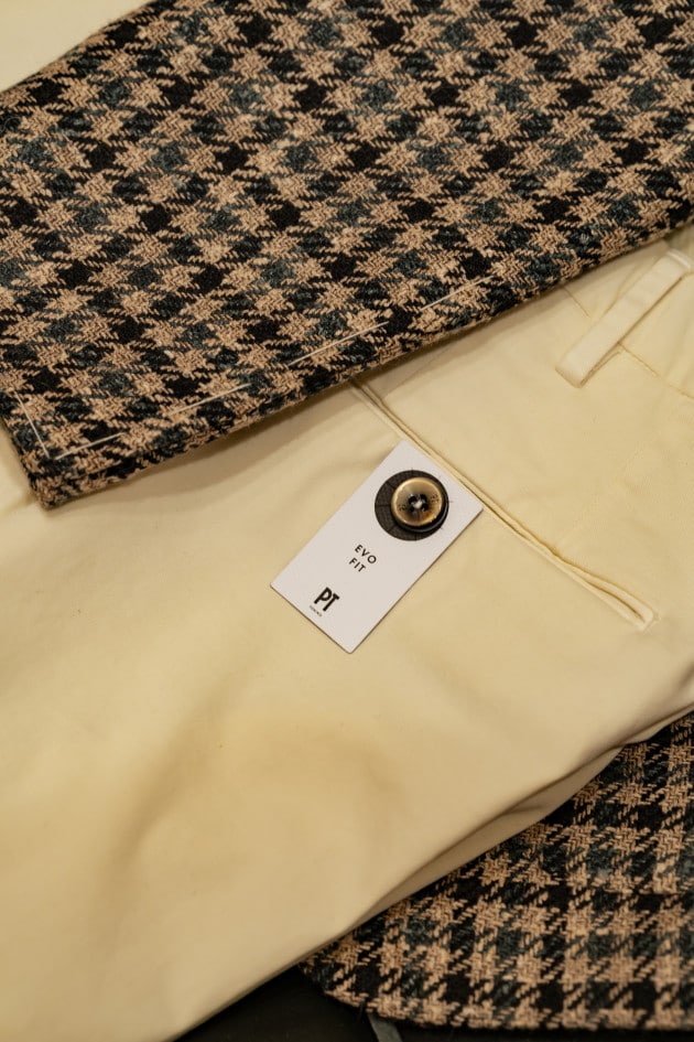 ロンドンはウエストエンドの中心であるREGENT STREETをイメージしたモデルで、2インプリーツにサイドアジャスター、片ピスポケット無し、深めの股上というイギリスのビスポークパンツのディテールを踏襲したパンツとなっております。