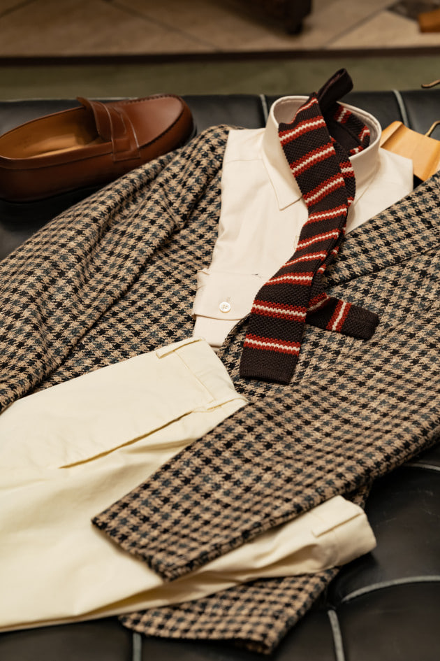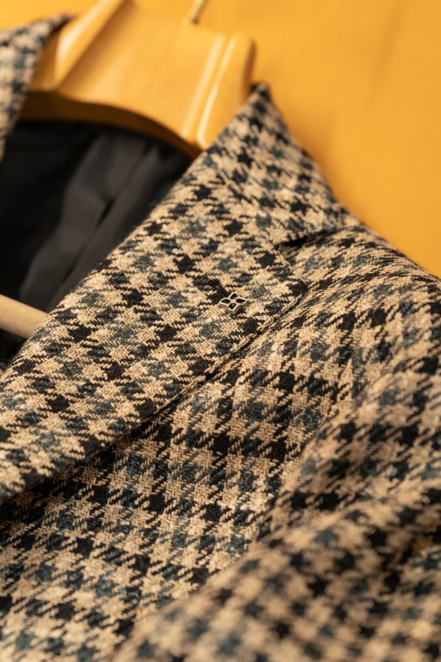 生地は<MOON>のベージュ×ブラウン×ブラックのガンクラブチェック。この生地を使用しているのはBEAMSのみみたいですよ。