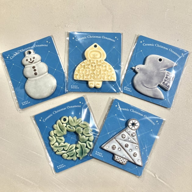 バーズワーズのアトリエにて、すべて手作業で作られる期間限定販売のクリスマスオーナメント。