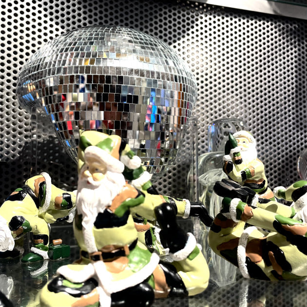 軍服の無骨さとサンタクロースのゆるさが絶妙にマッチ。