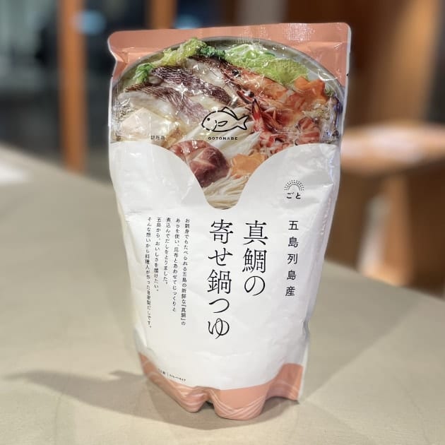 長崎・五島列島の天然真鯛の【あら】と昆布を焼いて煮込んで出汁を取ったという鍋つゆ自家製の鯛油も加えて旨みと深みがup。