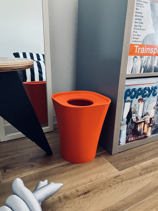 こちらはジャスパー・モリソン氏の名作"TRASH"です。ゴミ箱をこれほどまでに使い勝手と見た目のシンプルさを両立させたデザインは名作と言われる所以です。