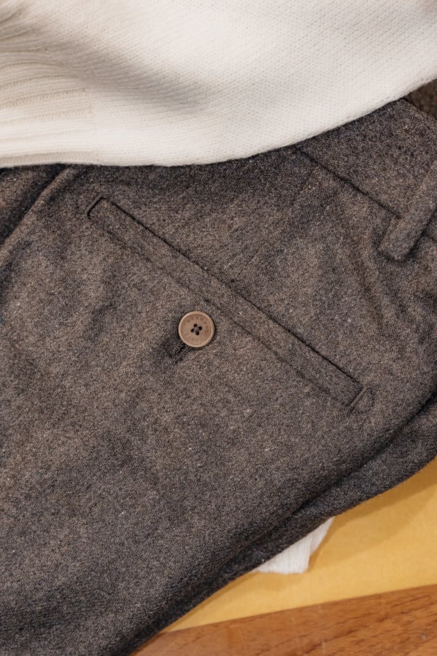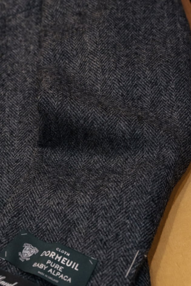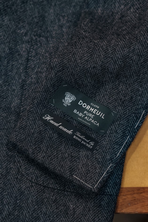 こちらが人気だった理由は間違いなく生地ですね。<DORMEUIL>はベビーアルパカ100%とカントリーなヘリンボーン生地とはまた違った柔らかいタッチで高級感たっぷりです。