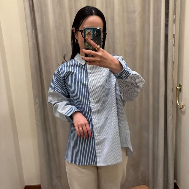このシャツのもう一つのポイントは、ビッグシルエット♡身体のラインを拾いにくく、リラックス感のある着心地が魅力です。