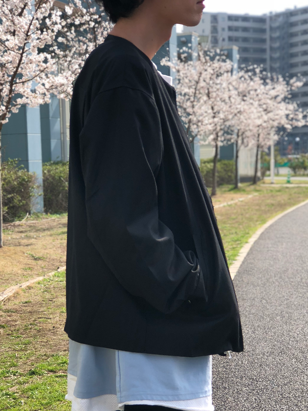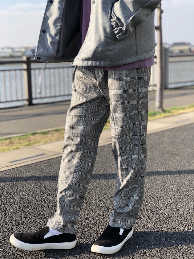 細身のパンツと合わせ上下でメリハリのあるコーディネートが山中のお勧め合わせです!