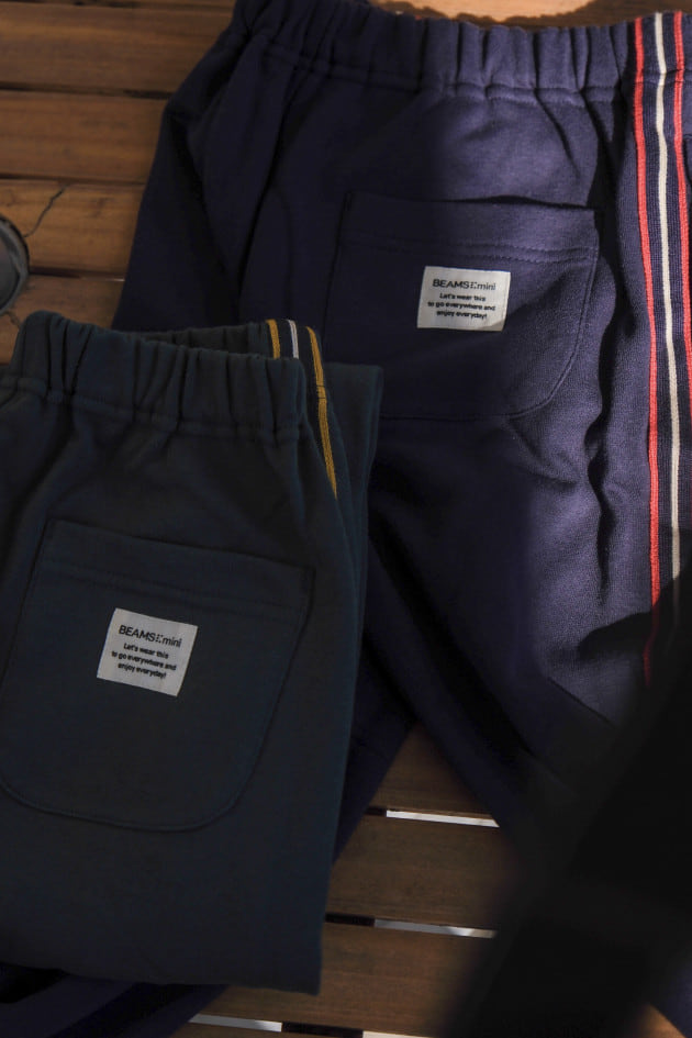 カラーはネイビーやグレーなど、どんなトップスにも合わせやすい落ち着いた色味が揃っています。トップスにカラフルなスウェットやニットを合わせると、ラインパンツの存在感が引き立ち、全体のバランスがよくなります。おうち遊びや公園、軽い運動の習い事にもぴったりで、動き回るお子さまにおすすめです◎