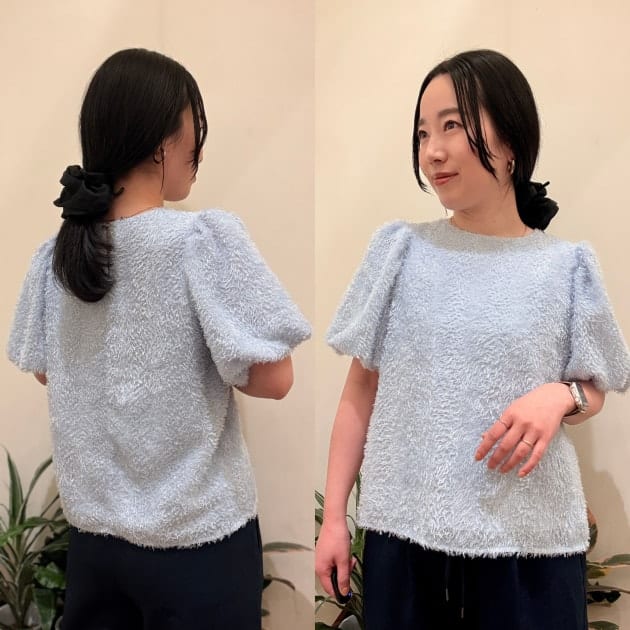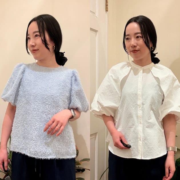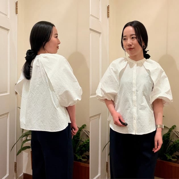 袖口のシルエットもふんわりとしていて、気になる二の腕をさりげなくカバーしてくれるのも嬉しいポイントですね。