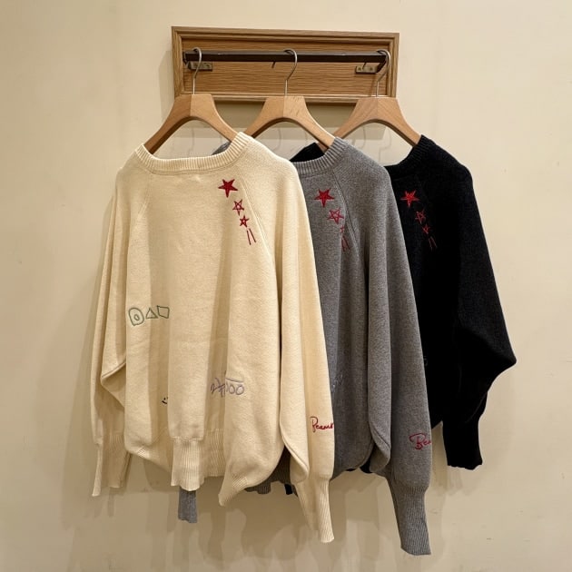 スウェットライク ロゴ刺繍 ニット