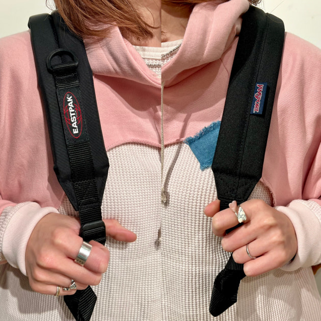 ブラックのパンツやスウェット、デニムなどカジュアルアイテムと重ね着するのがおすすめですっ