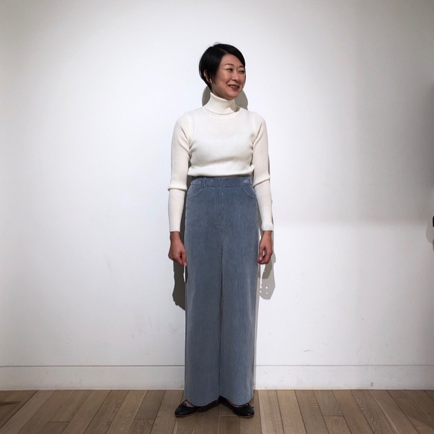 すらっと伸びる脚も魅力的なstaff andoはパンツスタイルでこちらを。
