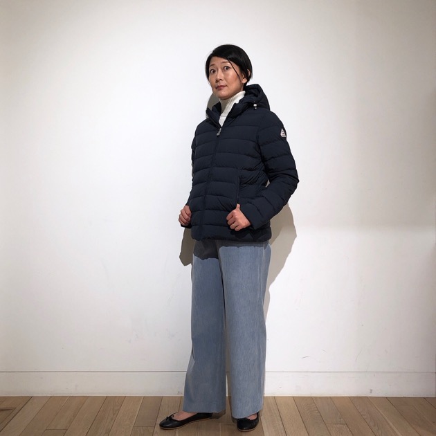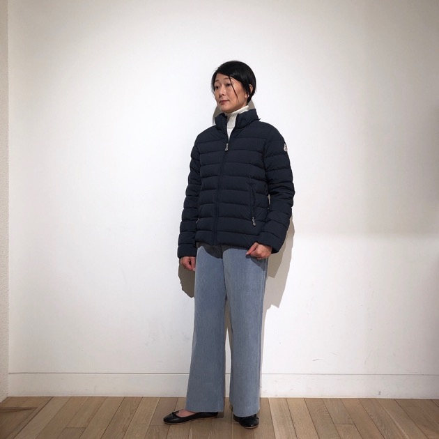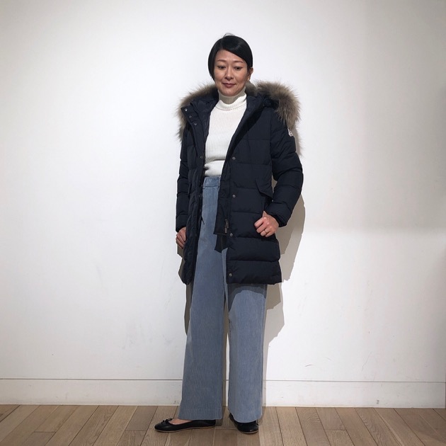 ↓続いては素材がとってもしなやかなこちら。『ピーチスキン』ということばがしっくりきます。飽きのこないデザインで、高級感もあり永く愛用したいダウン。