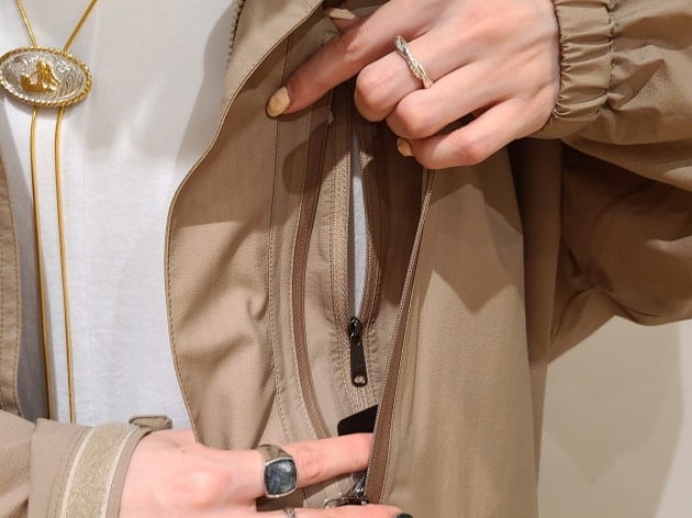 内側のファスナーは中に着ているお洋服に触れるようになっているんです!
