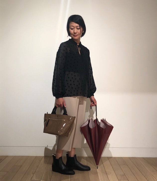 全体的にふんわりとボリュームのあるブラウスで身体のラインを拾わない嬉しいデザイン。