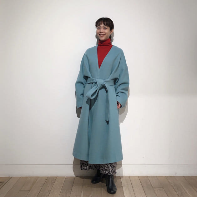ラップデザインのコートは羽織るだけで上品な印象になりますね〜