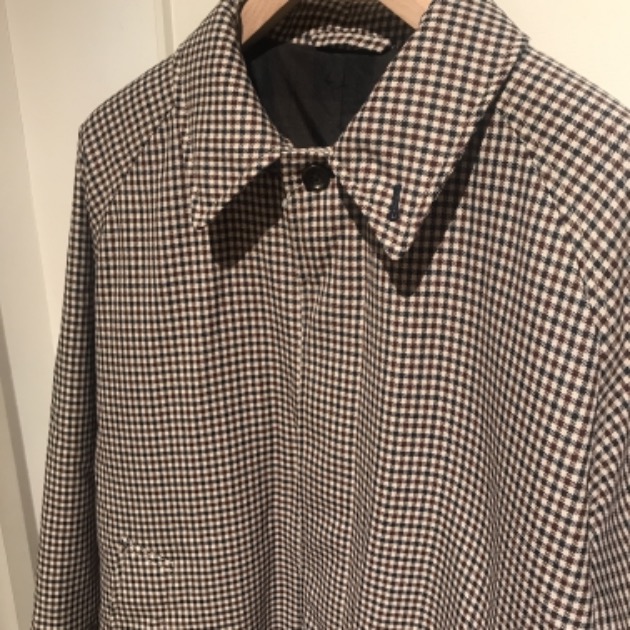 表面は撥水機能を持つツイルを使用しており、グレンチェックとガンクラブチェックをそれぞれ先染したオリジナル柄となっております。