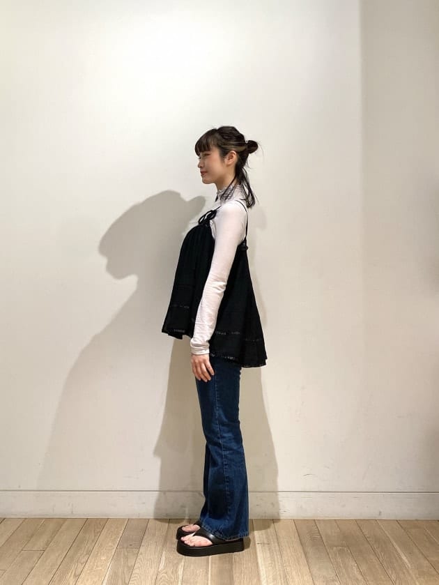 ドレープ感を際立たせるべく、タイト目なインナーと合わせました。
