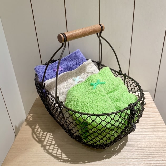 素材は、レーヨンの一種であるビスコースとリネン、ポリエステルの交撚糸を使用しています。