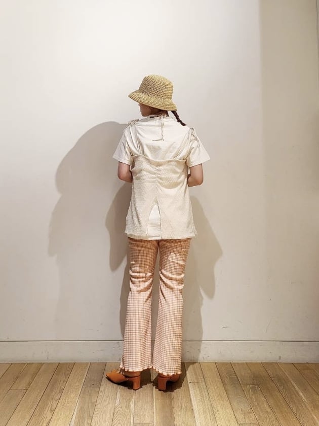 お次はこちら。昨年に続きリリースされたサテンテープのギャザーキャミソール 。