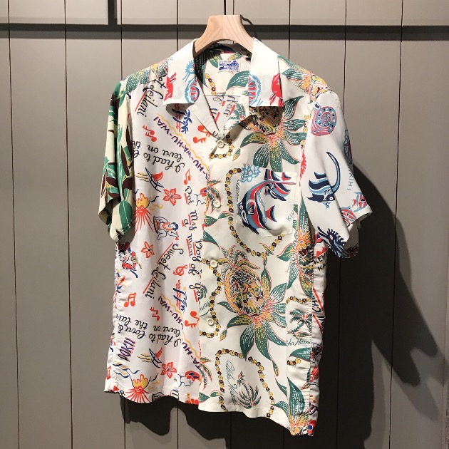 どちらもプリントで表現される事の多い柄ですがそれをジャカード織にて表現されているのが技術の高いブランドらしさ溢れ、高級感漂うアロハシャツですね。