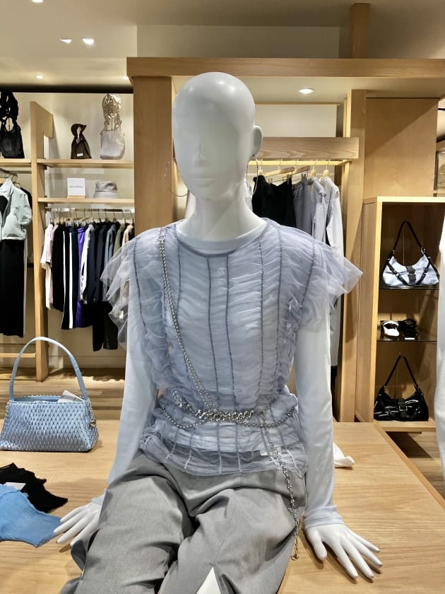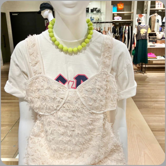 引き続きカットアウトディテールやシアーアイテムなど女性らしいシックなアイテムに、スポーツアイテムを組み合わせたスタイルが今期はおすすめです!